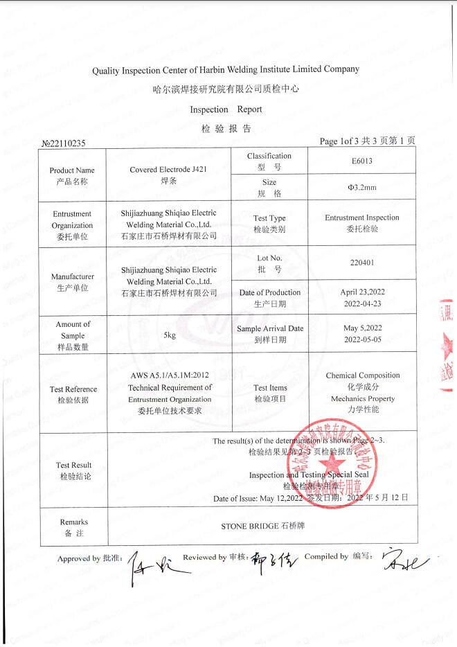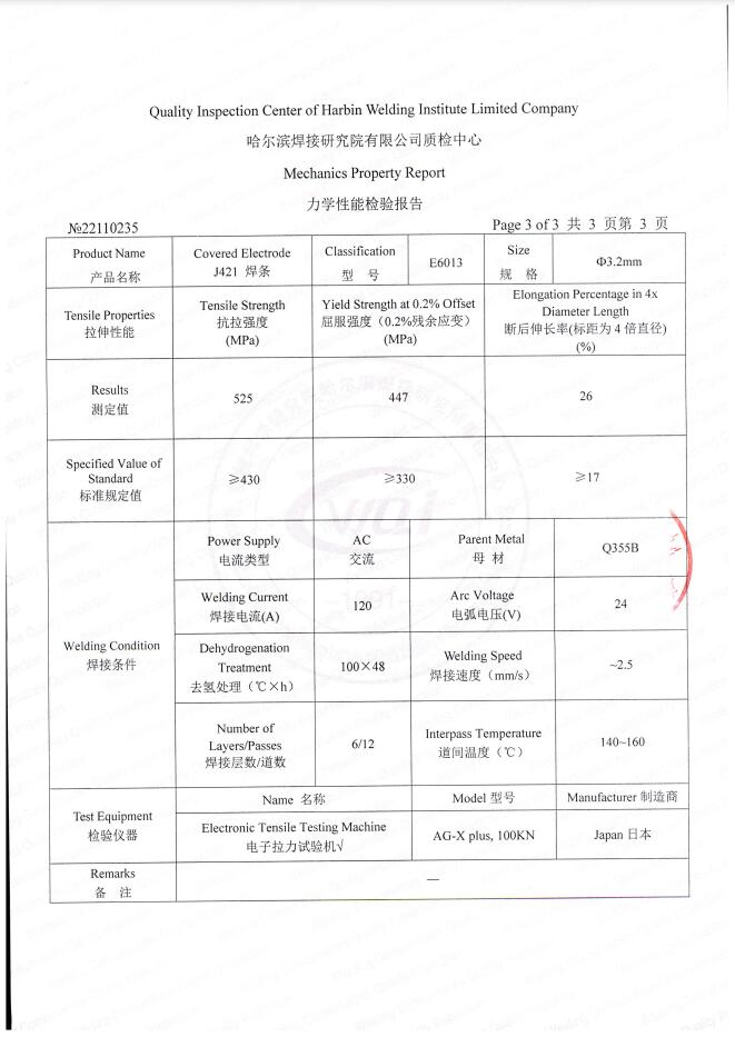 J421(E6013)檢測報告檢測報告