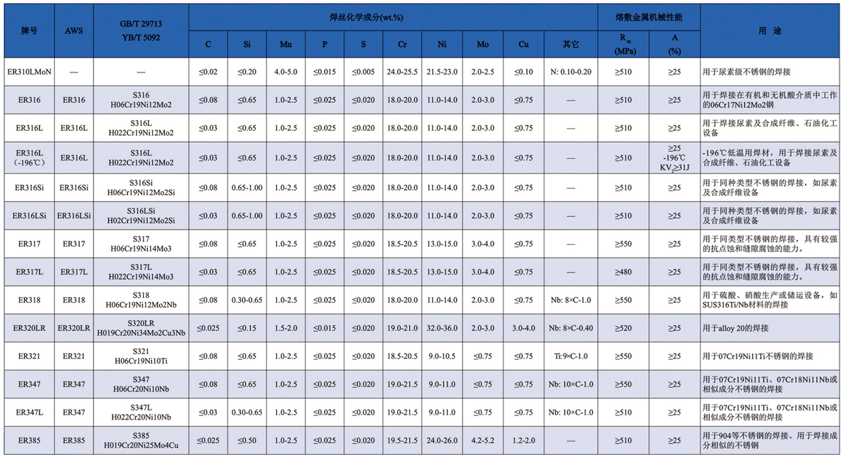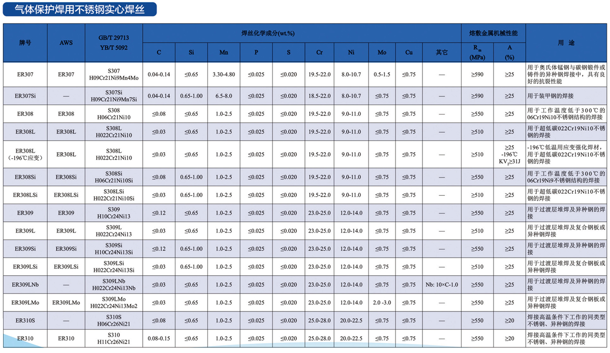 不銹鋼實芯焊絲既可用惰性氣體保護(hù)焊(TIG,MIG焊)。也可用于埋弧焊。不銹鋼MIG焊既可達(dá)到高效焊接,又容易實現(xiàn)焊接自動化,廣泛用于堆焊及薄板接等領(lǐng)域。