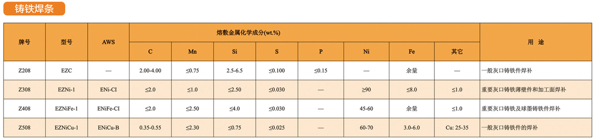 鑄鐵焊條具有良好的抗裂性能和加工性能,交直流兩用,焊接電弧穩(wěn)定,焊條不發(fā)紅,操作方便。適用于鑄鐵薄件,加工面補焊,如汽缸蓋,發(fā)動機座,齒輪箱,機床導(dǎo)軌等重要灰口鑄鐵件。